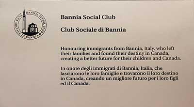 Rendre hommage aux immigrants de Bannia, en Italie, qui ont quitté leur famille et ont trouvé leur destin au Canada, créant un avenir meilleur pour leurs enfants et le Canada.